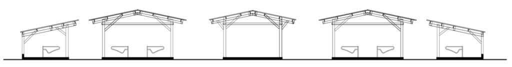 La conception semi-ouverte et la hauteur des modules favorisent un renouvellement d’air naturel et constant. L’air entrant et sortant circule sans zones stagnantes ce qui améliore le confort thermique.